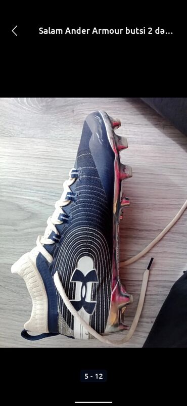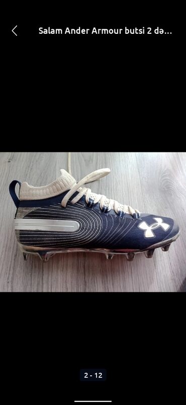 Under Armour futbol butsisi - Brend: Under Armour - Rəng: tünd göy/ağ - Üst hissə: nəfəsalan tekstil və sintetik panellər, elastik corab tipli boğaz - Bağlama: klassik kordon - Yanlarda iri UA loq...