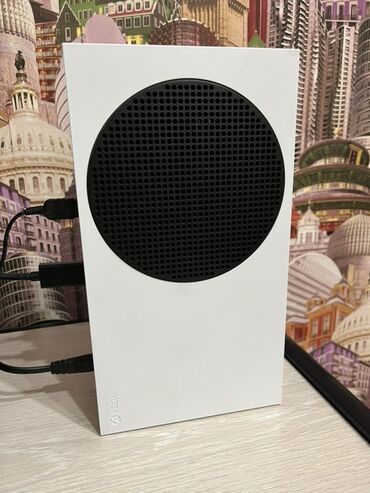 Ağ rəngli Xbox Series S oyun konsolu. Yığcam dizaynı ilə seçilir və evdə əyləncə üçün əlverişlidir. Üzərində olan qara dairəvi hissə hava girişidir. Ağ rəngli simsiz oyun idarəetmə pultu ilə birlik...