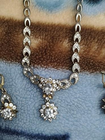 Material: gümüş tonlu metal ərintisi, parlaq şüşə/kristal daşlar.