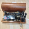 Taxta korpuslu və qara rəngli metal gövdəyə malik vintaj əl tikiş maşını. Maşının üzərində qızılı rəngli naxışlar var və əl ilə fırladılan çarx mexanizmi ilə işləyir. Bu maşın dərzilik işləri, deko...