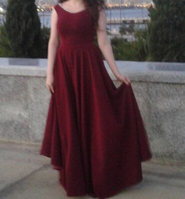 Xüsusi olaraq dərsi terefinnen tikilib bircə dəfə geyinilib 6 metrdən çox parçadan isdifade olunub yuxarı hissəsi bədənə oturan ətəyi ful kloş uzun libasdir rengi bardovu rəngdir