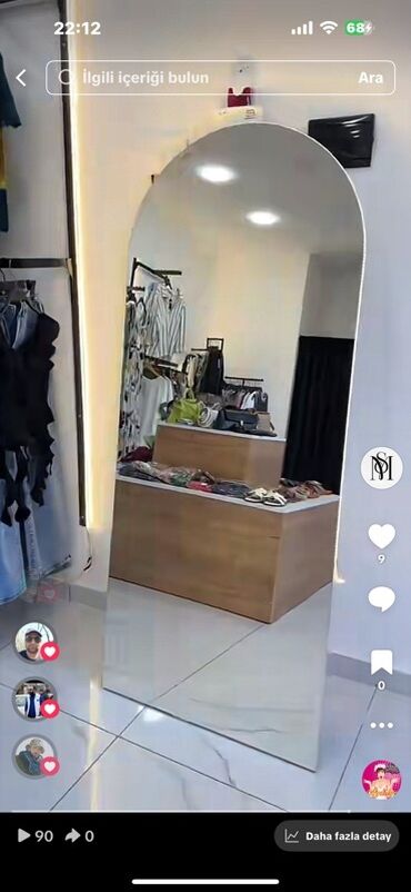 Qövs formalı böyük boy güzgü – LED işıqlı
