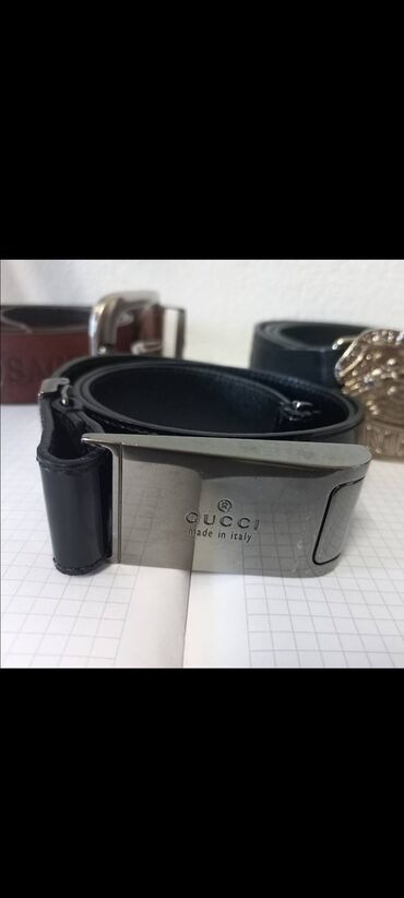 - Tokası: parlaq metal, düzbucaqlı formalı avtomatik/sürüşmə mexanizmli; üzərində “GUCCI – made in italy” yazısı