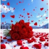 - Parlaq çəhrayı qızılgüllər və yaşıl yarpaqlardan ibarət zəngin buketlər