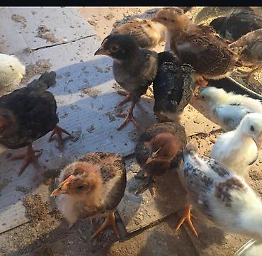 Məhsul: Yerli cücələr (qarışıq rəng və cinslər) Təsvir: - Şəkillərdəki partiya hal-hazırda böyüdülməkdə olan yerli cücələrdən ibarətdir. Rənglər müxtəlifdir: krem, qəhvəyi, qara və xallı lələklər....