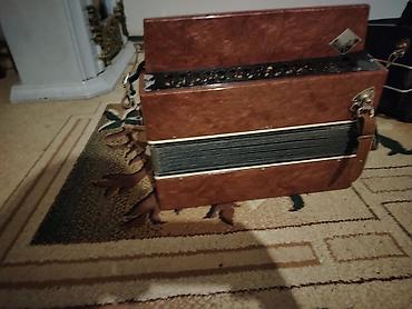 Akkordeon – klavişli və bas düyməli - Tip: Klavişli akkordeon (piano klaviaturası) və sağ tərəfdə bas/akord düymələri - Korpus: Qəhvəyi-mərmər fakturalı örtük, metal yan qapaqlar, klassik keçə kör...