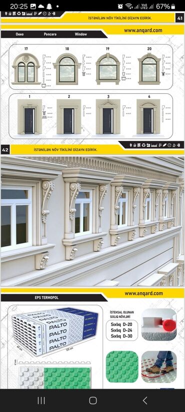 - Pəncərə və qapı çevrələri üçün hazır kalıplar və individual ölçüyə uyğun kəsim