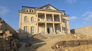 - Klassik sütunlu, balkonlu monumental villa fasadı üçün daş dekor kompleksi