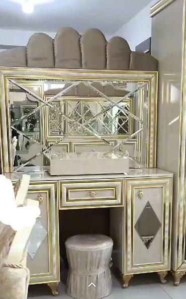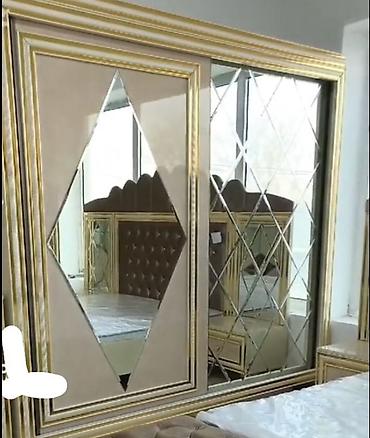 Şəkildə necədir elədir heç bir problem yoxdur qızılı rəngdir güzgülər paxlava şəkillidir sadəcə dolabı 6 qapılı olub yeni kimidir yəni sadəcə qurulub açılıb içində yaşanmayıb necə rəngdirsə elədir heç nöqtə qədər belə problemi yoxdur yataq dəstidir real alıcı olarsa bəlkə endirim olar.Ünvan saatlı rayon istəyən əlaqə saxlaya bilər yəni heç bir problem yoxdur.