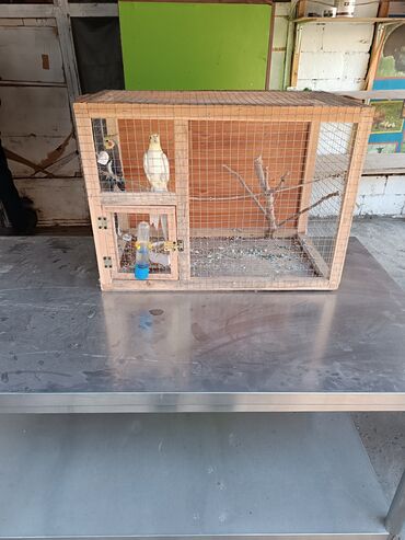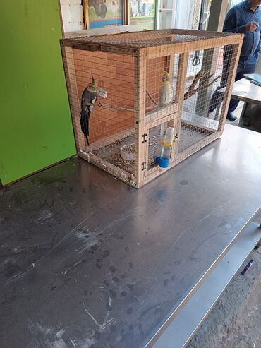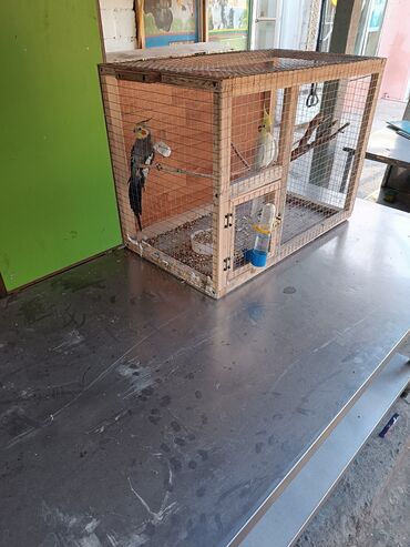 Taxta qəfəsdə nimfa tutuquşuları (2 ədəd) və avadanlıqlar
