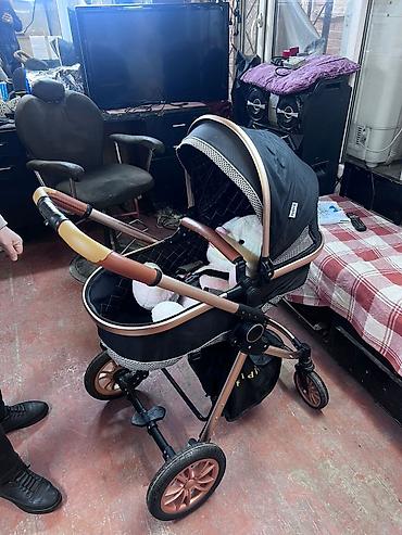 Uşaq arabası – çoxfunksiyalı, rahat və praktik model - Rəng: qara/qızılı tonlar - Karkas: yüngül və dayanıqlı metal çərçivə - Təkərlər: iri arxa, öndə fırlanan cüt təkər; hamar sürüş və manevr üçü...
