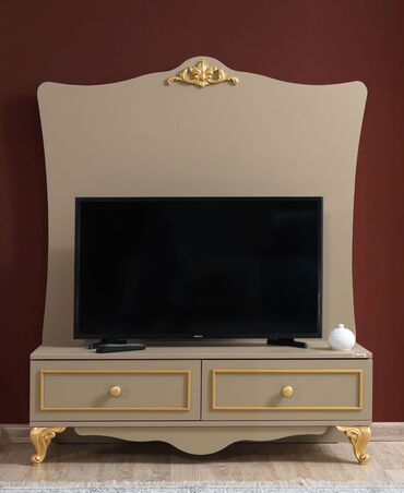 - Dizayn xüsusiyyətləri: oyma qızılı ornamentlər, qövs formalı güzgü, zərif tutacaqlar, konusvari ailə ayaqları, asimmetrik modern-klassik harmoniya.