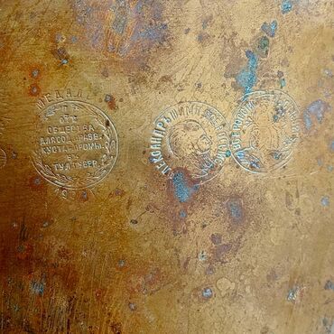 Kolleksionerlər üçün nadir, damğaları oxunan orijinal antik samovar.