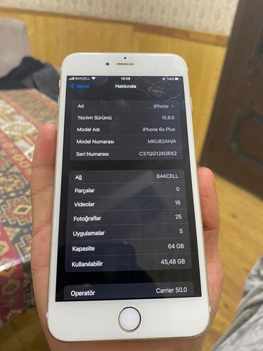 Apple iPhone 6s Plus – 64 GB, ağ rəng hec bir prablemi yoxdur barmag izine kimi iwleyir