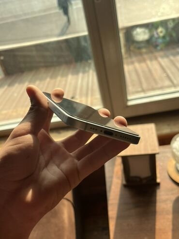 Məhsul: Apple iPhone (USB‑C girişli model) Xüsusiyyətlər: - Rəng: Açıq mavi ton (light blue) - Ekran: Tam ekran, Dynamic Island kəsiyi olan OLED displey - Port: USB‑C şarj/data girişi - Səs: Aşağı...
