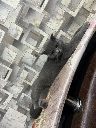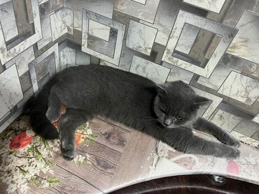 Britaniya qısa tüklü (British Shorthair) tipli boz (blue/boz-bej) pişik Xüsusiyyətlər: - Qısa, sıx və parlaq tük örtüyü – təkrəng boz ton - Yumru baş quruluşu, geniş yanaqlar, kiçik qulaqlar - Par...