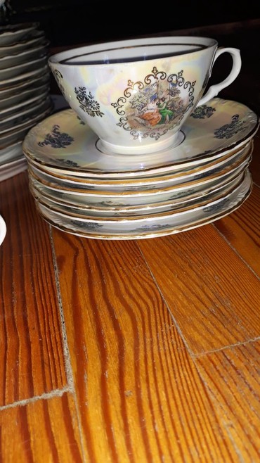 Məhsul: Dekorativ külqabı və boşqablar dəsti - 2 ədəd bürünc rəngli
