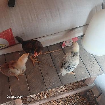 Məhsul: Yerli cücələr (qarışıq rəng və cinslər) Təsvir: - Şəkillərdəki partiya hal-hazırda böyüdülməkdə olan yerli cücələrdən ibarətdir. Rənglər müxtəlifdir: krem, qəhvəyi, qara və xallı lələklər....