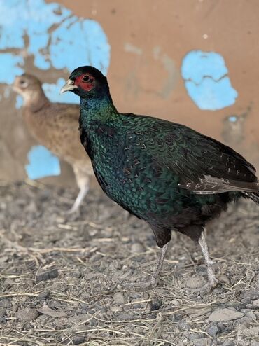 Cins: Uzunboyun yerli döyüş tipli toyuq-quş (xanxır/mix) Təsvir: - Şəkillərdə iki fərqli quş göstərilir: biri qara-yaşıl tüklü, qırmızı-qəhvəyi çiyinli xoruz; digəri açıq qəhvəyi-qarışıq rəngli cüc...