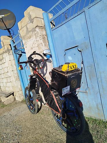 - Güclü elektrik ötürücüsü ilə təchiz olunmuş velosiped. Korpus boyunca akkumulyator və idarəetmə bloku yerləşdirilib.