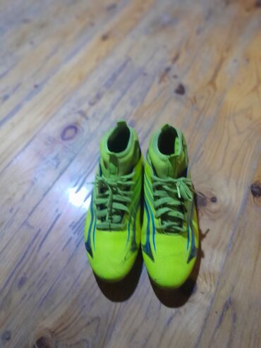 TƏZƏDİR. İSTİFADƏ OLUNMAYIB. Futbol butsası – parlaq neon sarı/yaşıl rəng, qara detallarla. Üst hissə yüngül, elastik və ayağa sıx oturan materialdan, üzərində naxışlı süni dəri teksturası. İçlik h...