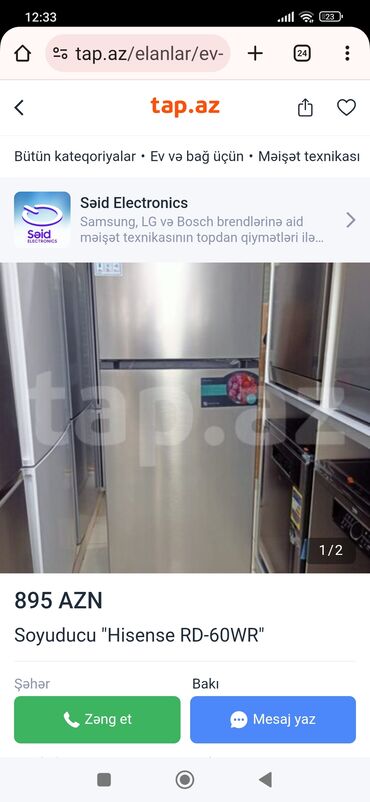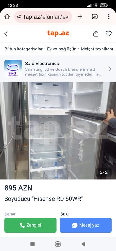 Hisense iki qapılı soyuducu (üstdən dondurucu)