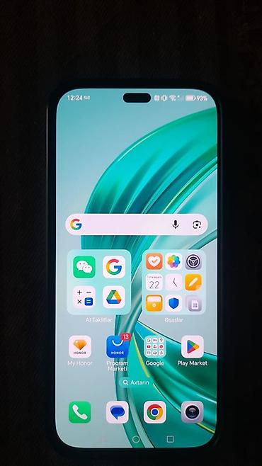 - Platforma və funksiyalar: Android əsaslı Magic UI, Google tətbiqləri (Gmail, Drive, Chrome və s.), Honor tətbiq mağazası, NFC simvolu görünür.