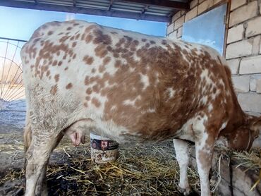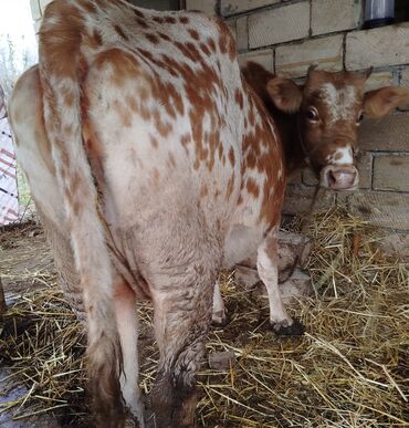 Süd verən inək - Cins tipajı: qəhvəyi-ağ ləkəli, buynuzlu - Süd istiqamətli saxlanılıb, iri və dolğun süd vəzisi görünür, sağım üçün əlverişlidır - Bədən quruluşu sağlam və iri, qidalanma üçün uyğ...