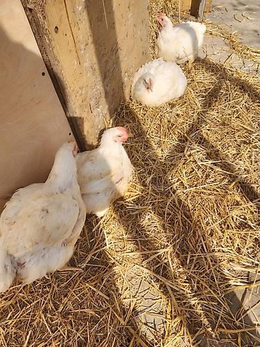 Broylər toyuğu - Cins: broylər (ətlik istiqamət) - Rəng: açıq ağ - Qidalanma: yaşıl otlaqlarda sərbəst gəzinti üçün uyğundur, kombikorma və qarışıq yemlərlə tez çəki yığır - İstiqamət: yüksək ət ç...