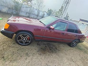Mercedes-Benz E-Class (W124) sedan - Kuzov: 4 qapılı sedan, ikirəngli boz-gümüşü xarici görünüş - Mühərrik: benzin (detallar göstərilmir) - Ötürücü: arxa ötürücülü - Disk/şin: 5 qollu AMG stili yü...