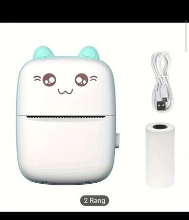 - Standart mini termal rulonlarla işləyir (ağ, rəngli, yapışqan əsaslı variantlarla uyğun).