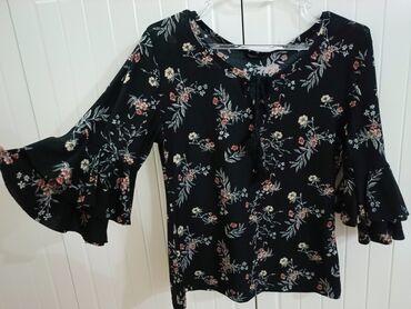 Qara rəng əsaslı, çiçək naxışlı qadın bluzası. Xüsusiyyətlər: -