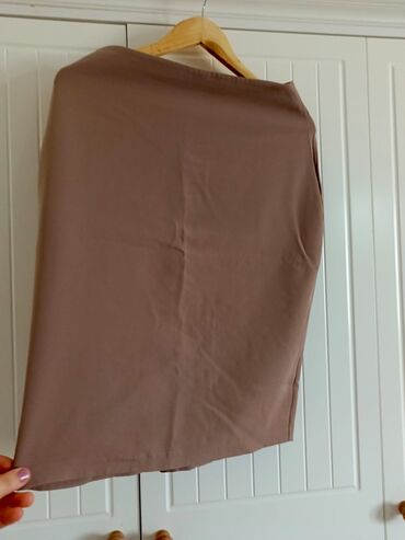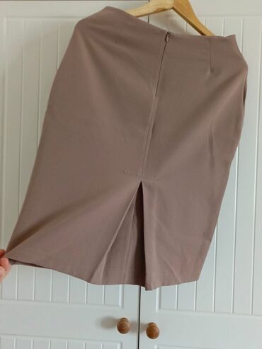 🌀Ətək: süd şokoladı/qəhvəyi ton, qələm fasonu, dizə yaxın uzunluq. Arxada gizli fermuar və mərkəzdə rahat hərəkət üçün dərin qatl/şlıtsa. Yüngül elastik, hamar parça.