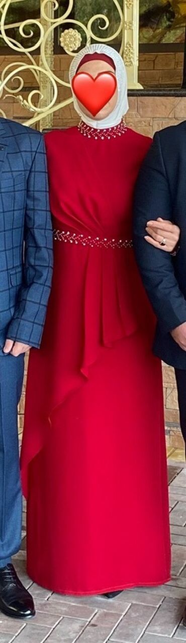 Qırmızı rəngdə, uzun və zərif ziyafət/tikilili abiye.