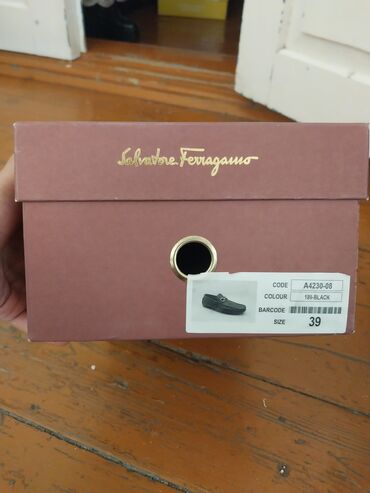 - Qutu: Salvatore Ferragamo yazılı qutu ilə birlikdə (etiketdə “CODE A4230-08, COLOUR 189-BLACK, SIZE 39”)