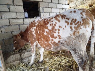Südlük inək - Rəng: qırmızı-ağ ləkəli 3 ci qarın 8 aylıq boğazdir təmiz səmetaldır təzə doğanda 16 18 litr süt verir yaxşı yaglı sütü var yaxşı yek maldır şekildə görnəkimdi böyük maldır