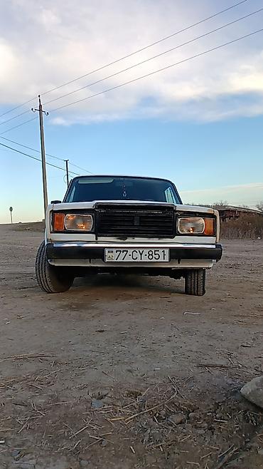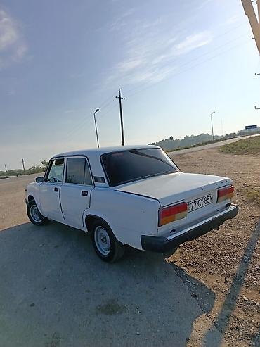 VAZ 2107 sedan - Kuzov: 4 qapılı sedan, ağ rəng - Nömrə nişanı: AZ 10-MS-370 (şəkildə görünür) - Salon: 5 nəfərlik oturacaq planı, klassik panel və mexaniki idarələr - Mühərrik: 1.5 l benzinli kar...