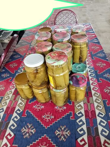 - Təsvir: Yarpaqlar təmizlənərək rulo şəklində yığılmış, duzlu məhlulda saxlanılıb. Hər banka sıx şəkildə doludur, qapaqlar hermetik bağlanıb.