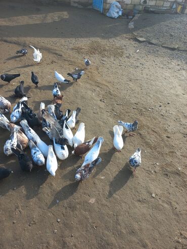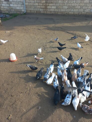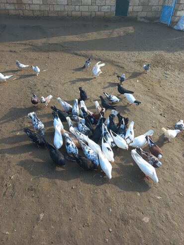 Uçuşçu qövlar – müxtəlif rənglərdə və naxışlarda ev göyərçinləri - Növ: uçuşçu/oyunçu ev göyərçinləri (qövlar) - Rənglər: ağ, qəhvəyi-ağ, qara-ağ, boz çalara girən ləkəli, xallı və b. kombinasiyal...