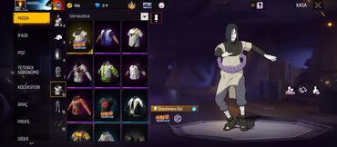 Free Fire hesabı – Naruto Orochimaru temalı paket və əlavə kosmetiklər