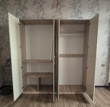 Yataq otağı mebel dəsti Tərkibi: - 4 qapılı qarderob: iki ədəd tam ölçülü güzgü qapı, qızılı dekor xətləri və tutacaqlar; asılqan bölməsi, rəflər və yuxarı-alt saxlama sahələri. - Dəstlə uyğun tua...