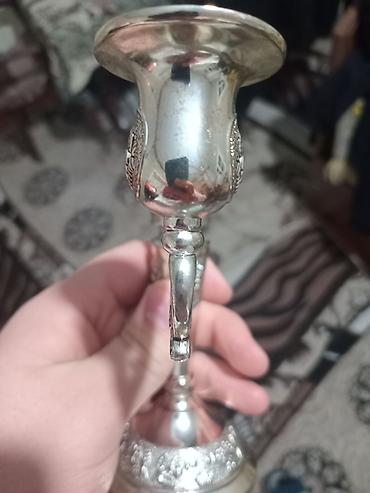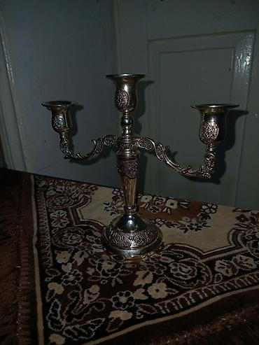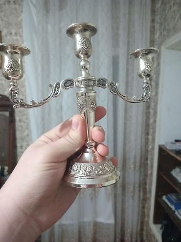 Üç şamlı klassik kandelabr - Material: metal ərinti, parlaq gümüşü