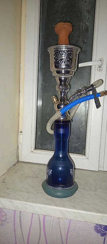 Nərgilə - Materiallar: mavi şüşə kolba, xrom rəngli metal gövdə, gil