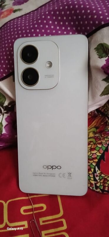OPPO smartfon Xüsusiyyətlər: - Rəng: gümüş/ağ parlaq arxa panel, OPPO loqosu - Ekran: tam ekran, mərkəzdə punch‑hole ön kamera - Arxa kamera: ikili modul + LED flaş, AI Camera yazısı - Portlar və ...