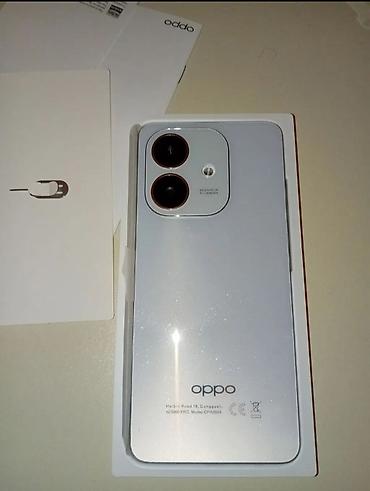 Oppo smartfon - Model: Oppo (etiketdə “CPH2xx” seriyası görünür) - Rəng: Açıq mavi - Ekran: Tam ekran, damcı formalı ön kamera kəsiyi - Arxa kamera bloku: İkiqat kamera modulu və LED fləş - SIM: İ...