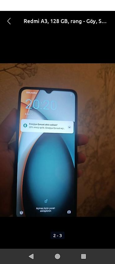 Xiaomi Redmi A3, Yaddaş 128 gb,Ram 6 gb,Ela işleyir,Cox az işlenib,cizigi çatı qirigi yoxdu,donub elemir,iki nomrelidi,Qiymet 120 manat sondu
