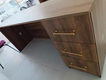 Ofis/kompüter stolu – 3 çekmecəli - Ölçü: 120 × 50 × 72 sm - Material: ağac teksturalı laminat/MDF görünüşlü səth, asan təmizlənən və davamlı - Funksional dizayn: - Sağ tərəfdə 3 geniş çekmece (...