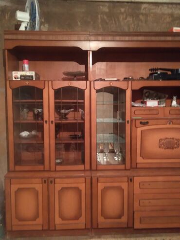 Стенка в хорошем состоянии,вместительная,локация говсаны,самовывоз,9 этаж Mebel dəsti - Klassik üslubda iri divar mebel sistemi: çoxseksiyalı konstruksiya, yuxarıda qapalı dolablar, ortada açıq ...