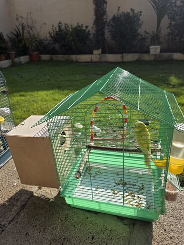 - Qəfəs: yaşıl metal karkaslı, üstü dam formalı, altı çıxarılan plastik altlıqla asan təmizlənir.