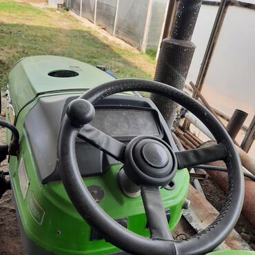 Kənd təsərrüfatı üçün təkərli traktor - Kabinəli, ön və arxa işıqlarla - Ön iki təkər dar, arxa iri protektorlu kənd təkərləri - Yuxarı çıxışlı egzoz borusu - Ön hissədə çəkici ucu və qoşqu halqas...